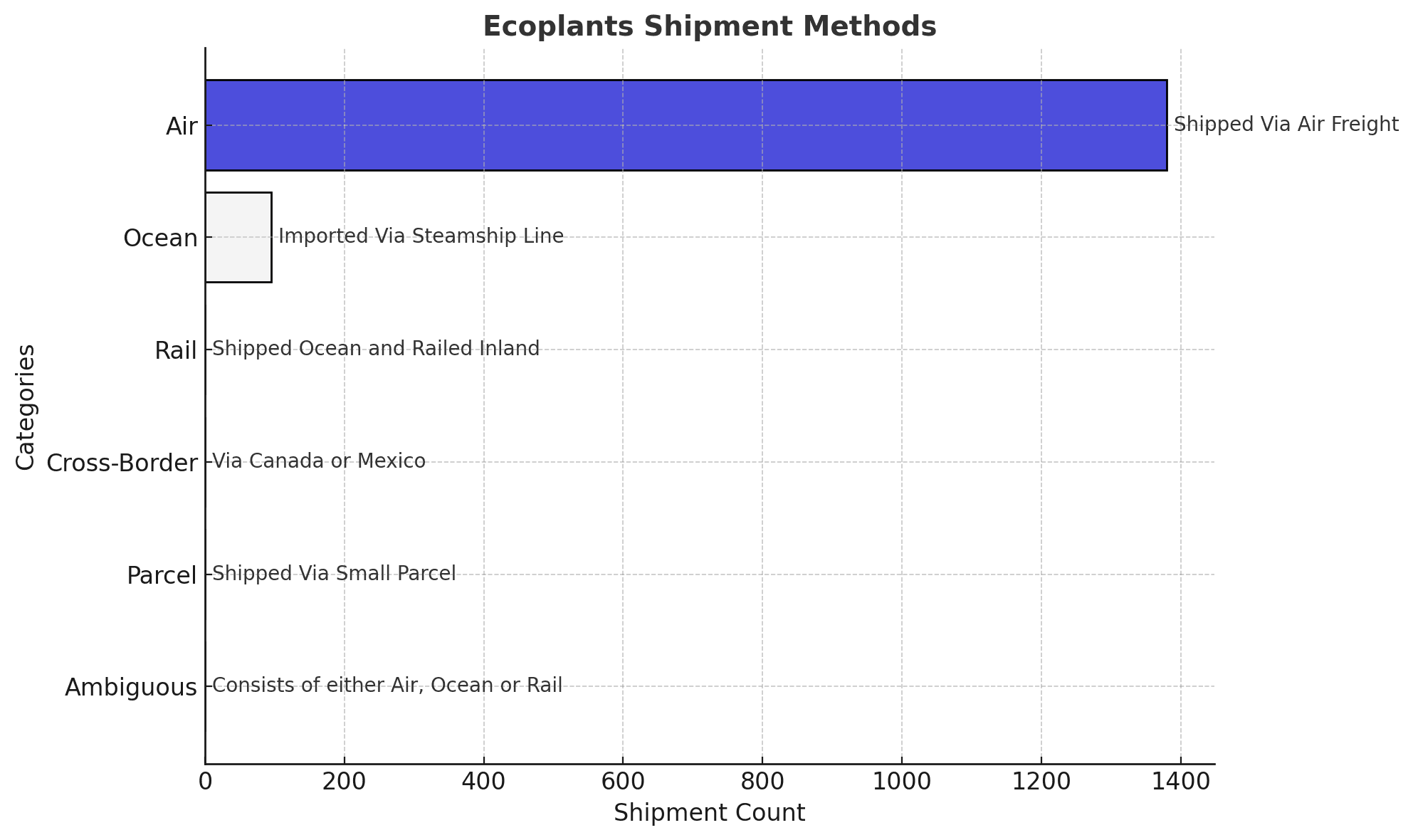 Ecoplants shipment data consists of 6% ocean, 94% air, among other modes.