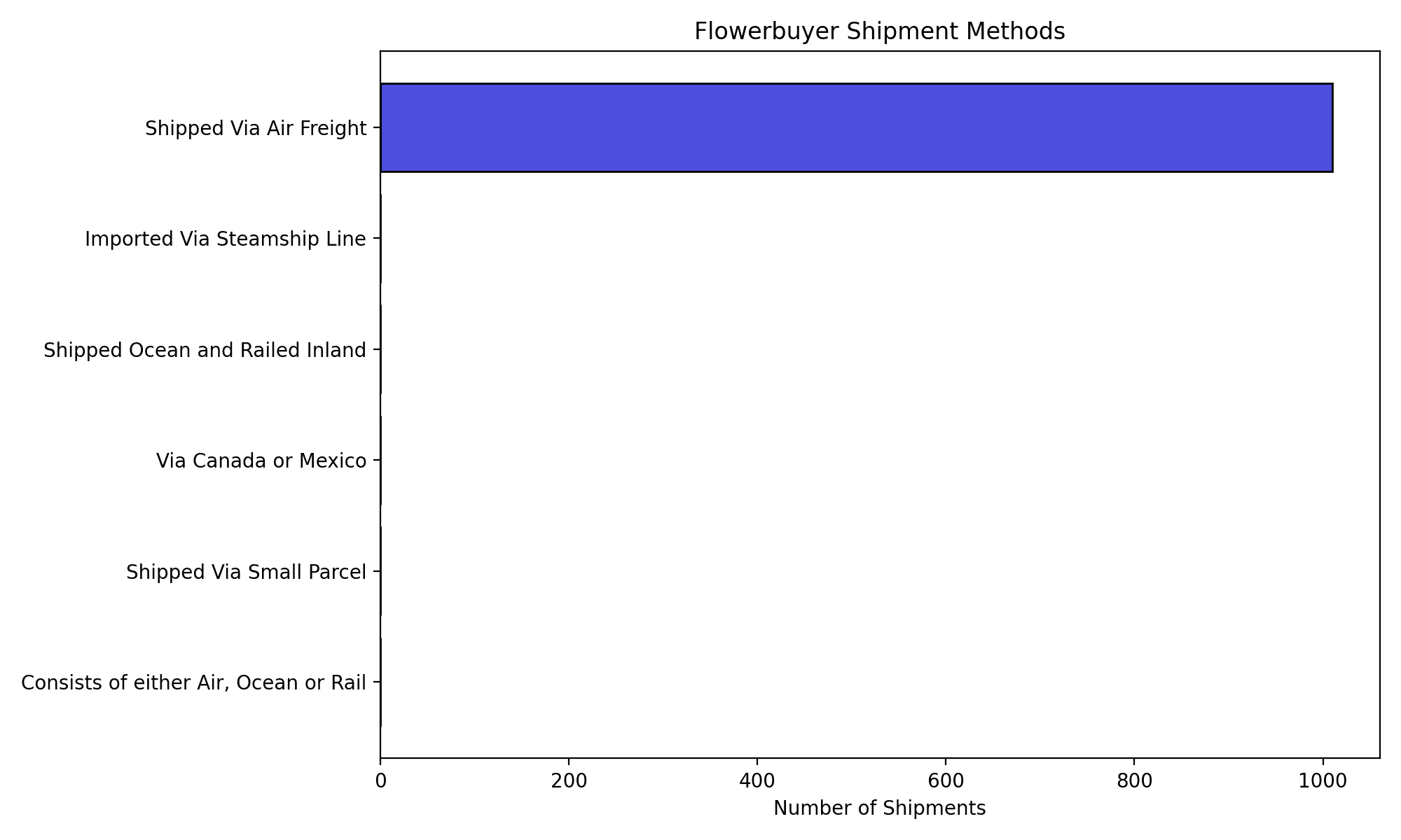Flowerbuyer shipment data consists of 100% air, among other modes.