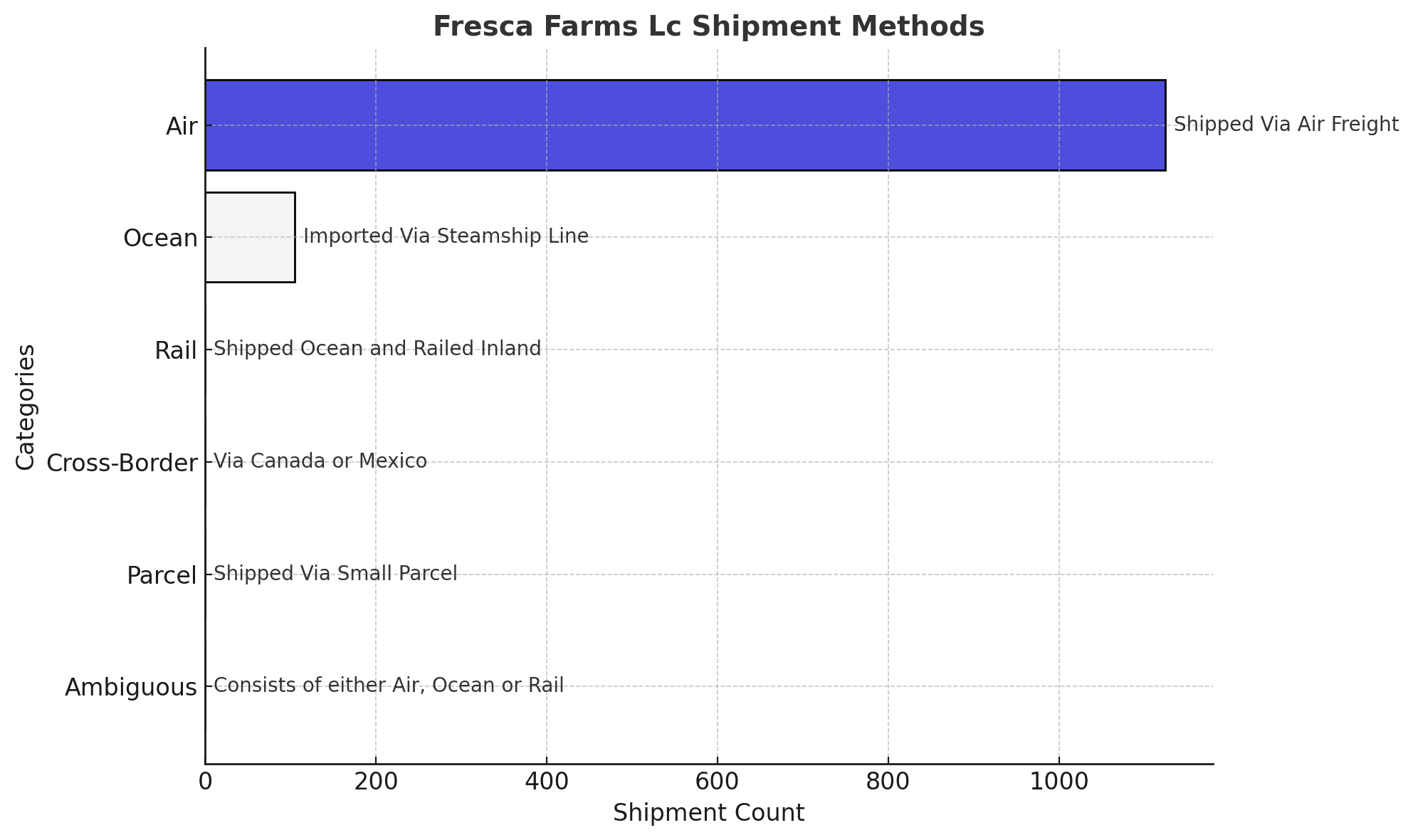 Fresca Farms Lc shipment data consists of 9% ocean, 91% air, among other modes.