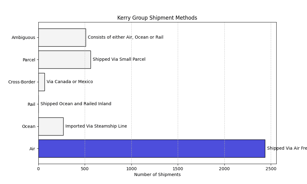 Kerry Group shipment data consists of 2% ocean, 1% air, 77% cross-border, among other modes.