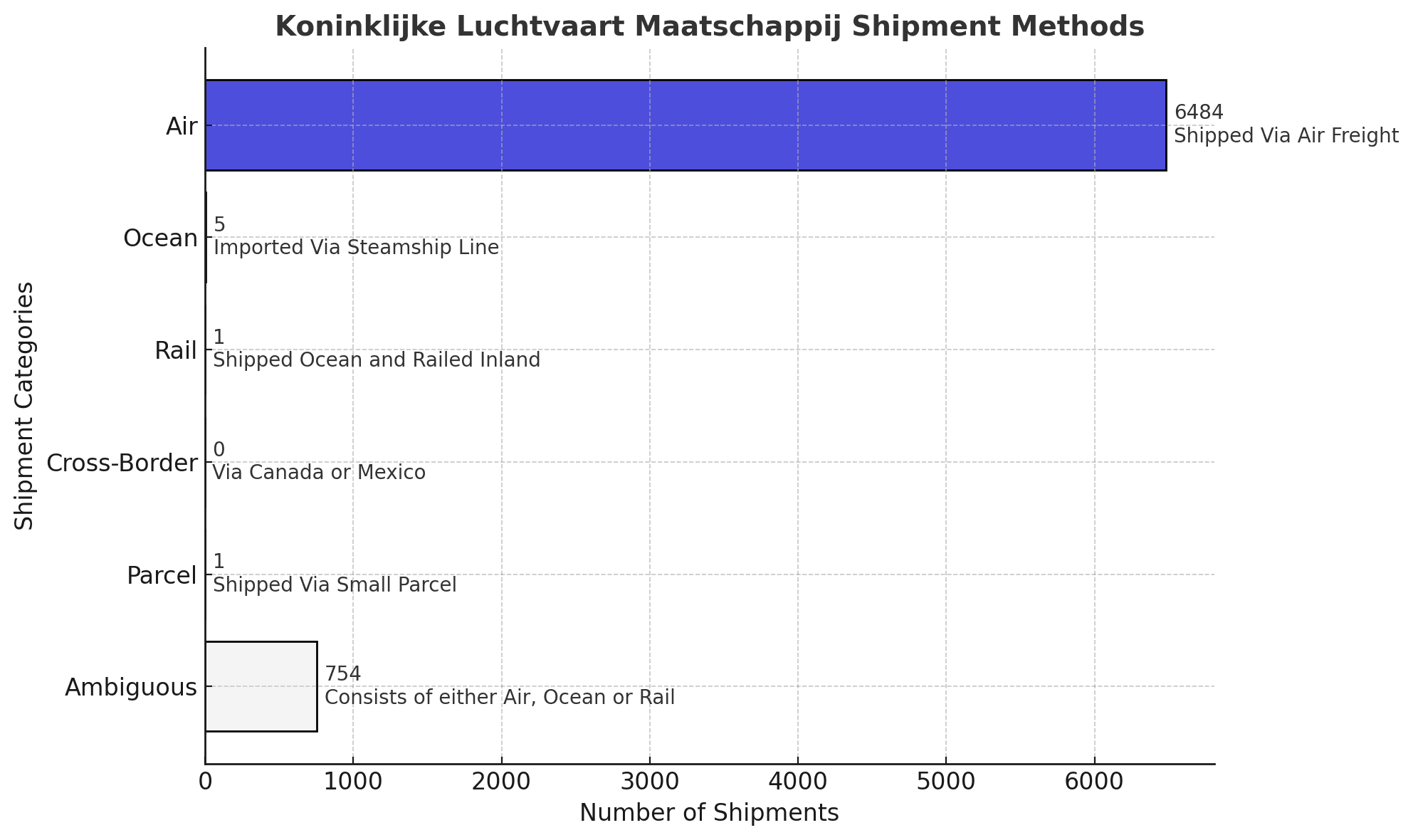 Koninklijke Luchtvaart Maatschappij shipment data consists of 89% air, among other modes.
