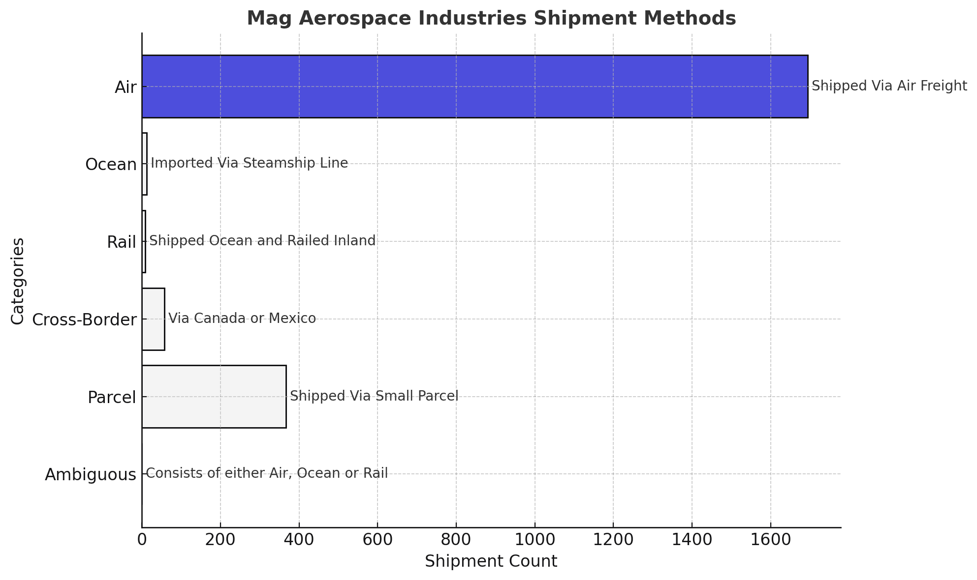 Mag Aerospace Industries shipment data consists of 79% air, 3% cross-border, among other modes.