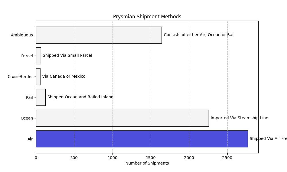 Prysmian shipment data consists of 5% ocean, 5% rail, 5% air, 71% cross-border, among other modes.