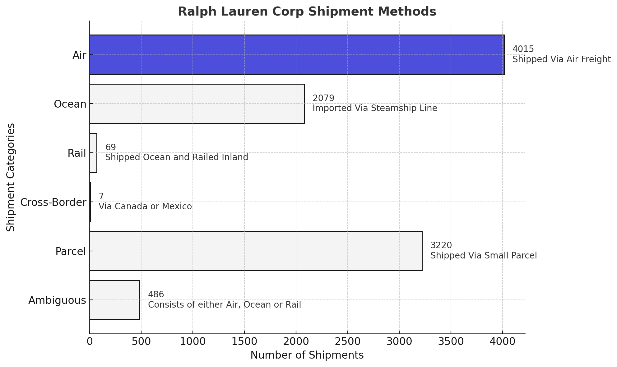Ralph Lauren Corp shipment data consists of 21% ocean, 41% air, among other modes.