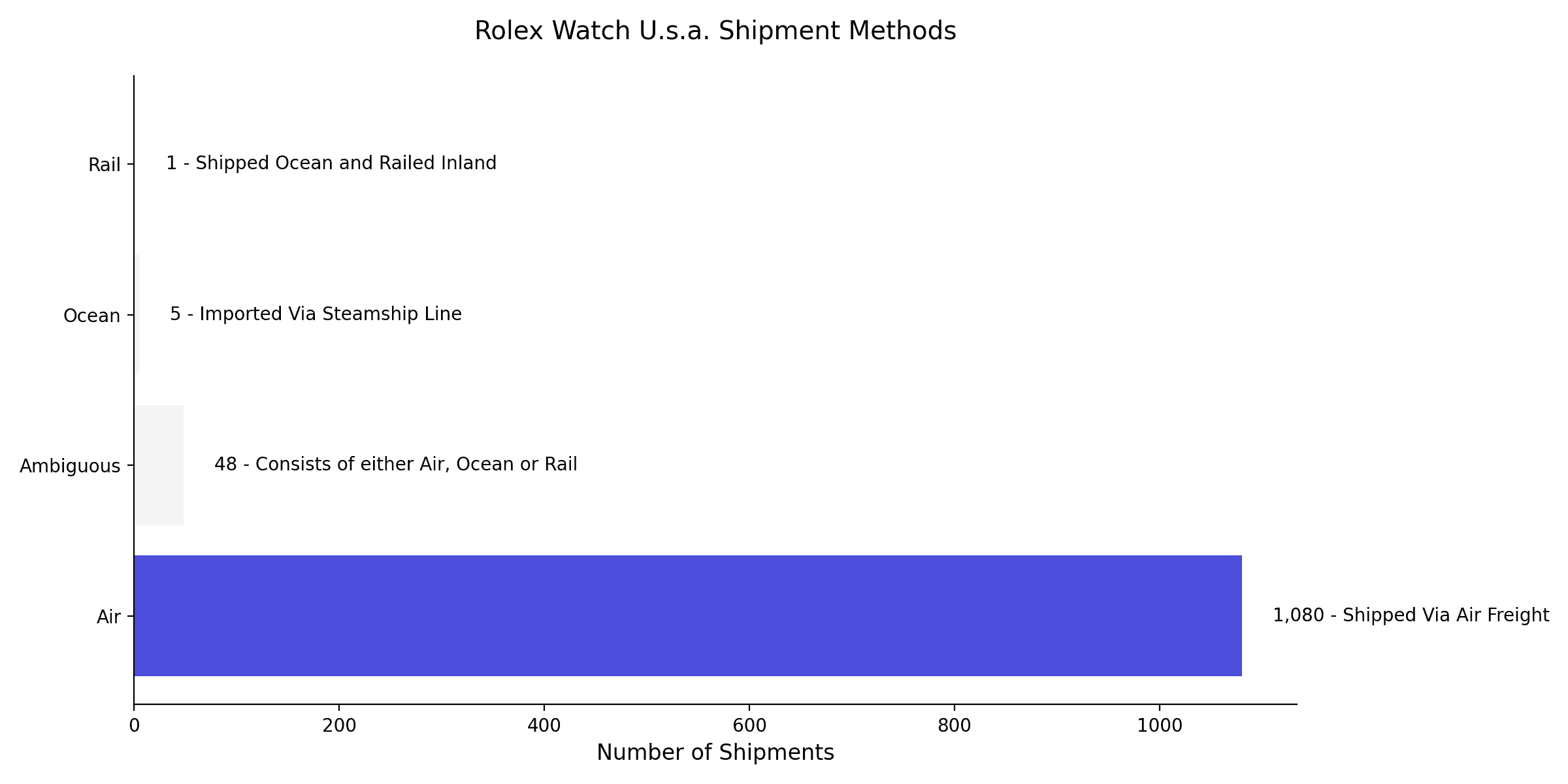 Rolex Watch U.s.a. shipment data consists of 95% air, among other modes.