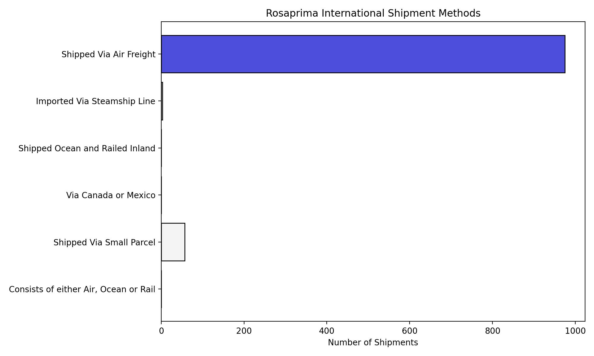 Rosaprima International shipment data consists of 94% air, among other modes.