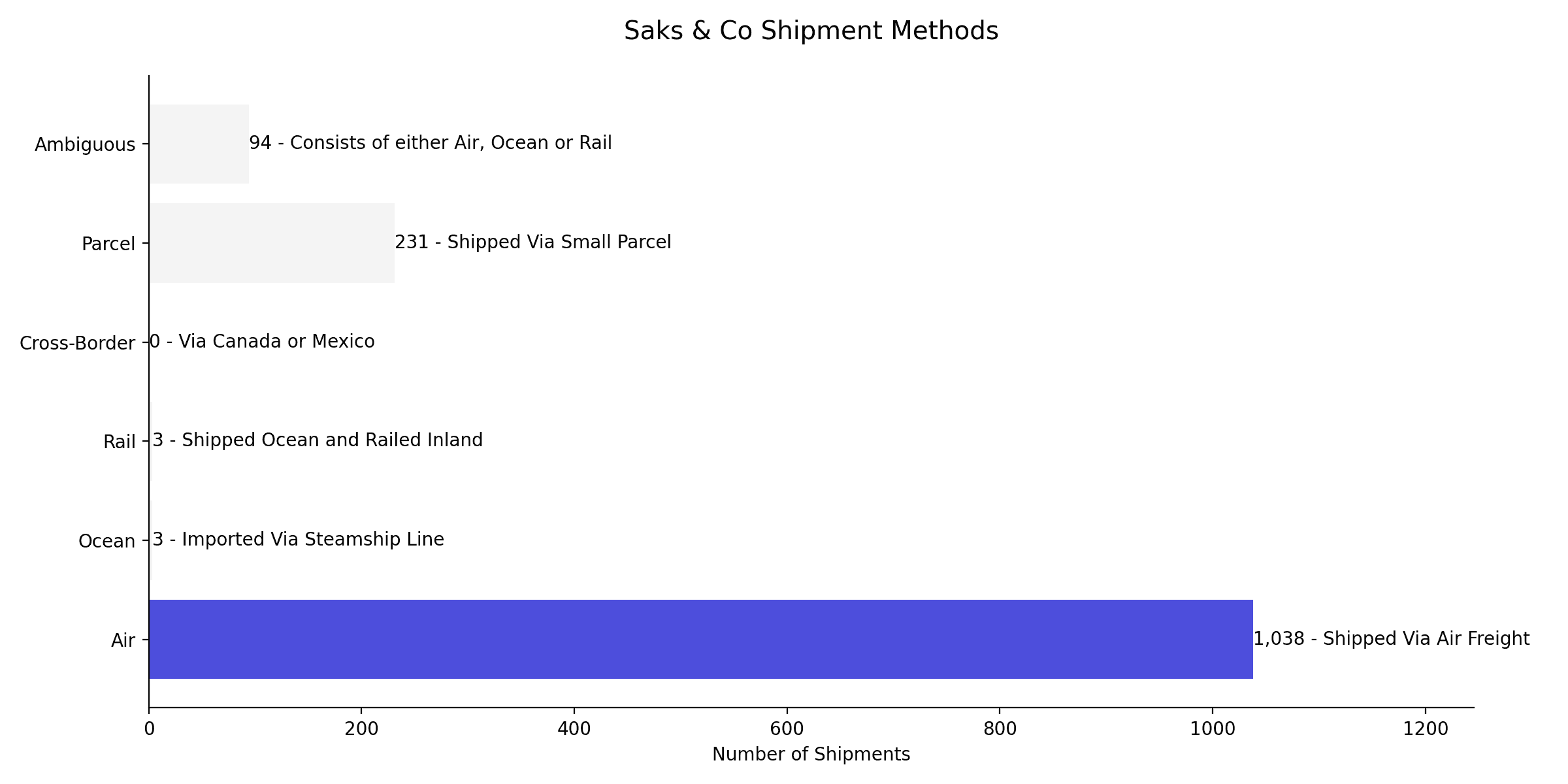 Saks & Co's current partners continually evolve over time. For an exhaustive view of customs broker relationships and trade networks, turn to Revenue Vessel’s vast database for exclusive access to these insights.