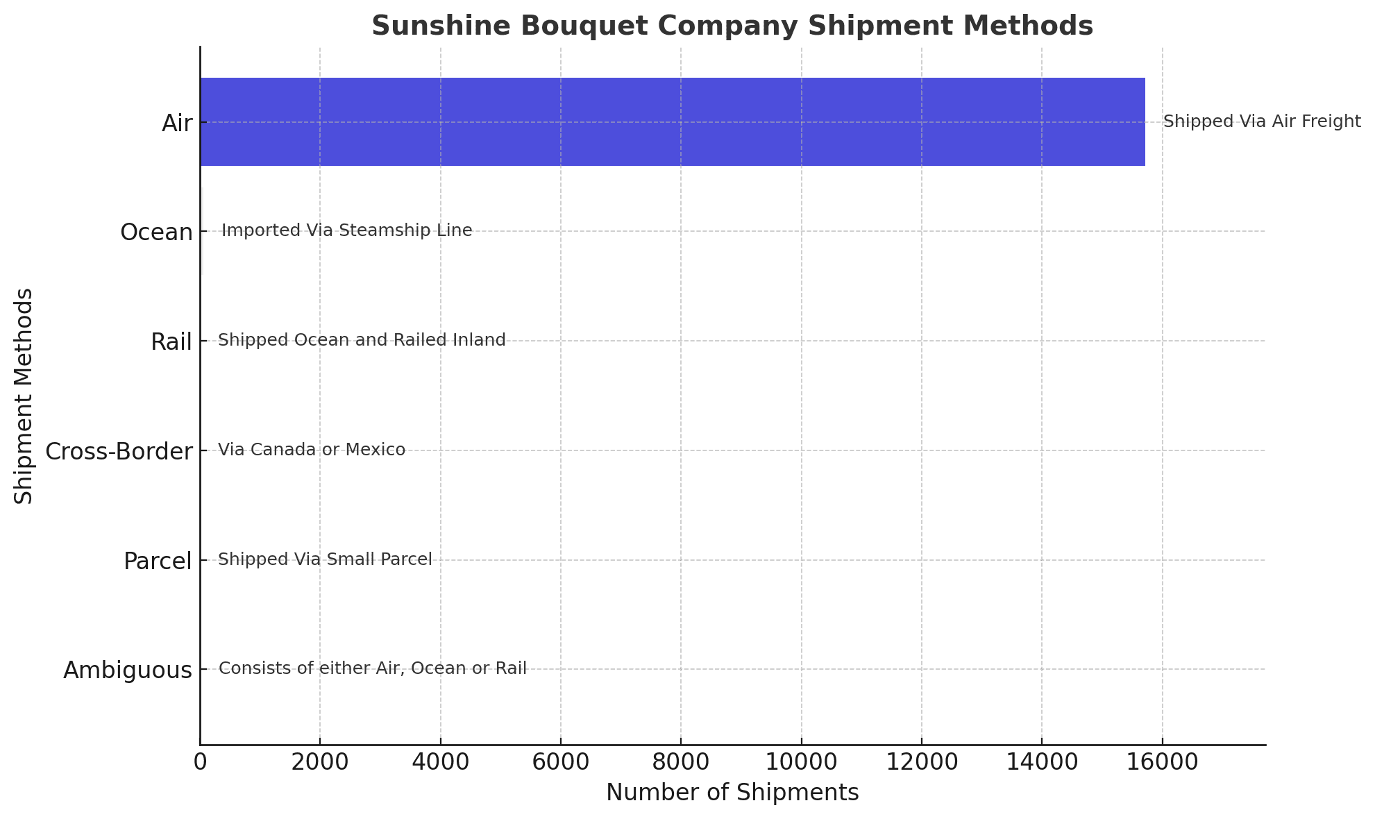 Sunshine Bouquet Company shipment data consists of 100% air, among other modes.