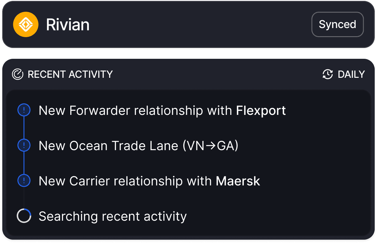 Connect your CRM or upload your customer list to automatically generate an enriched view of your customers, giving you deeper insight into their supply chain needs than ever.